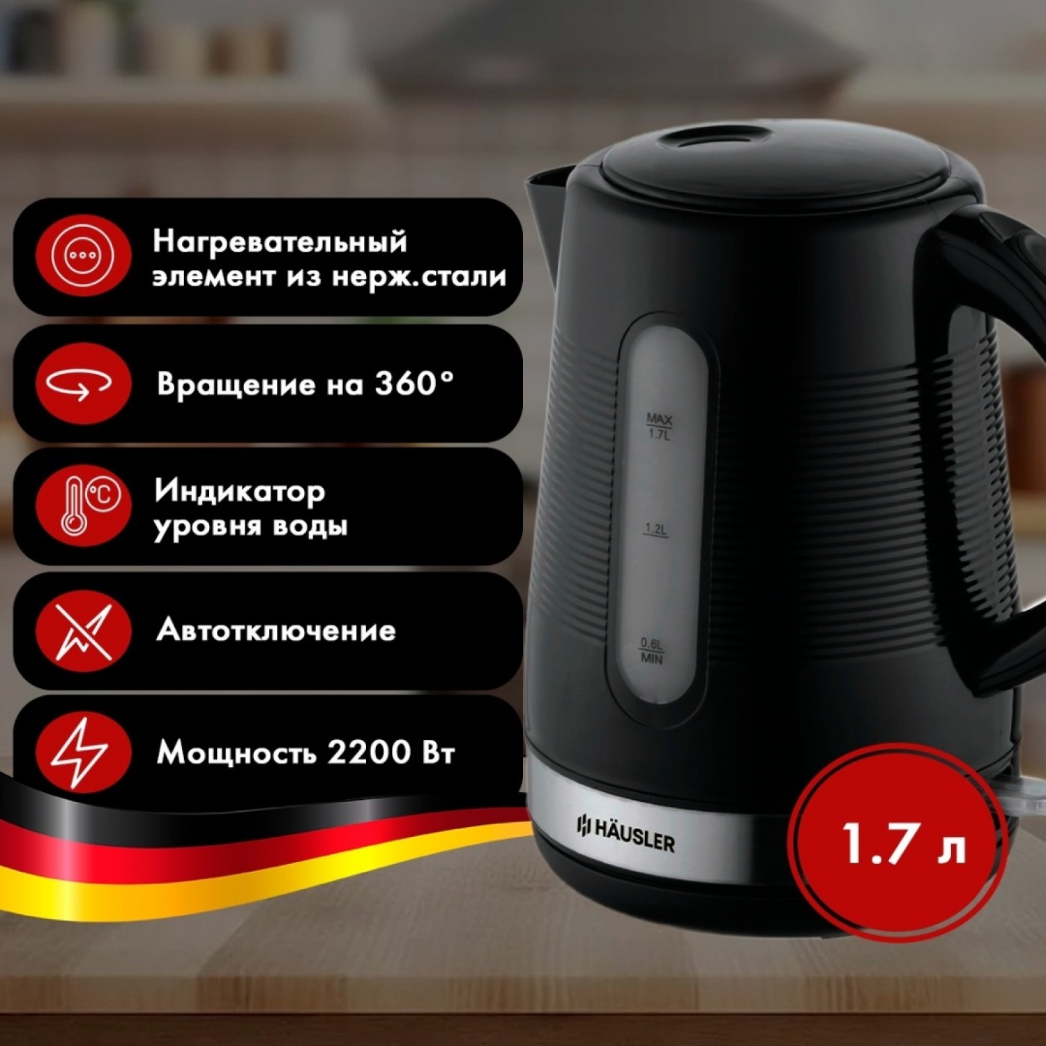 Объем: 1,7 л. Мощность: 1850-2200 Вт. Вращение на 360°.