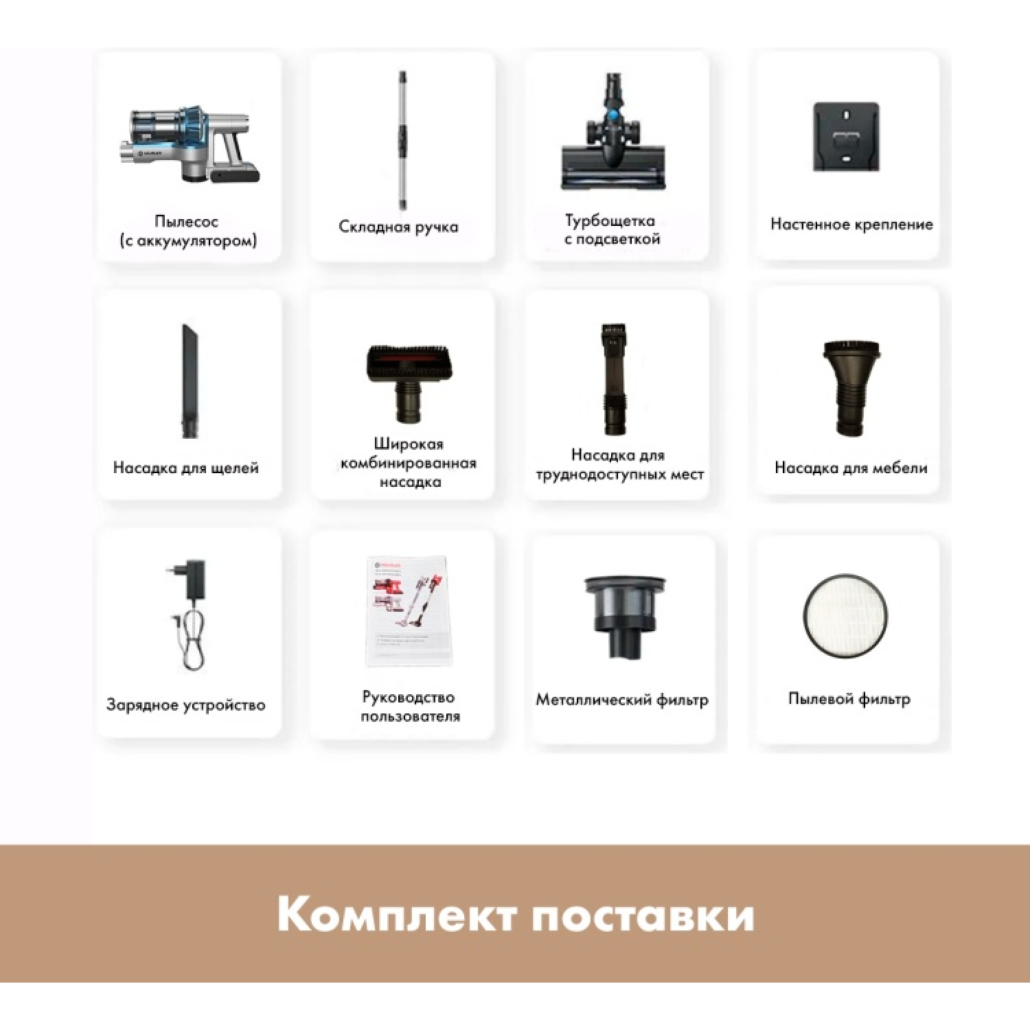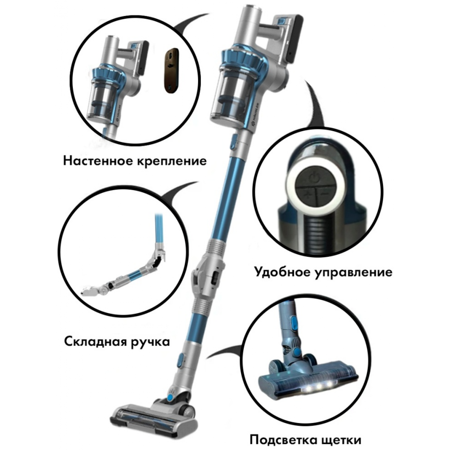 Насадки: 1)Турбощётка с подсветкой 2) Щелевая 2в1