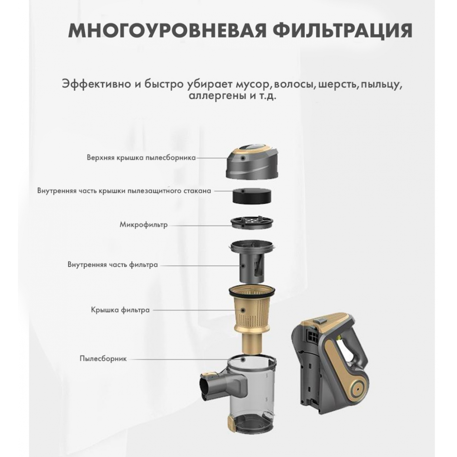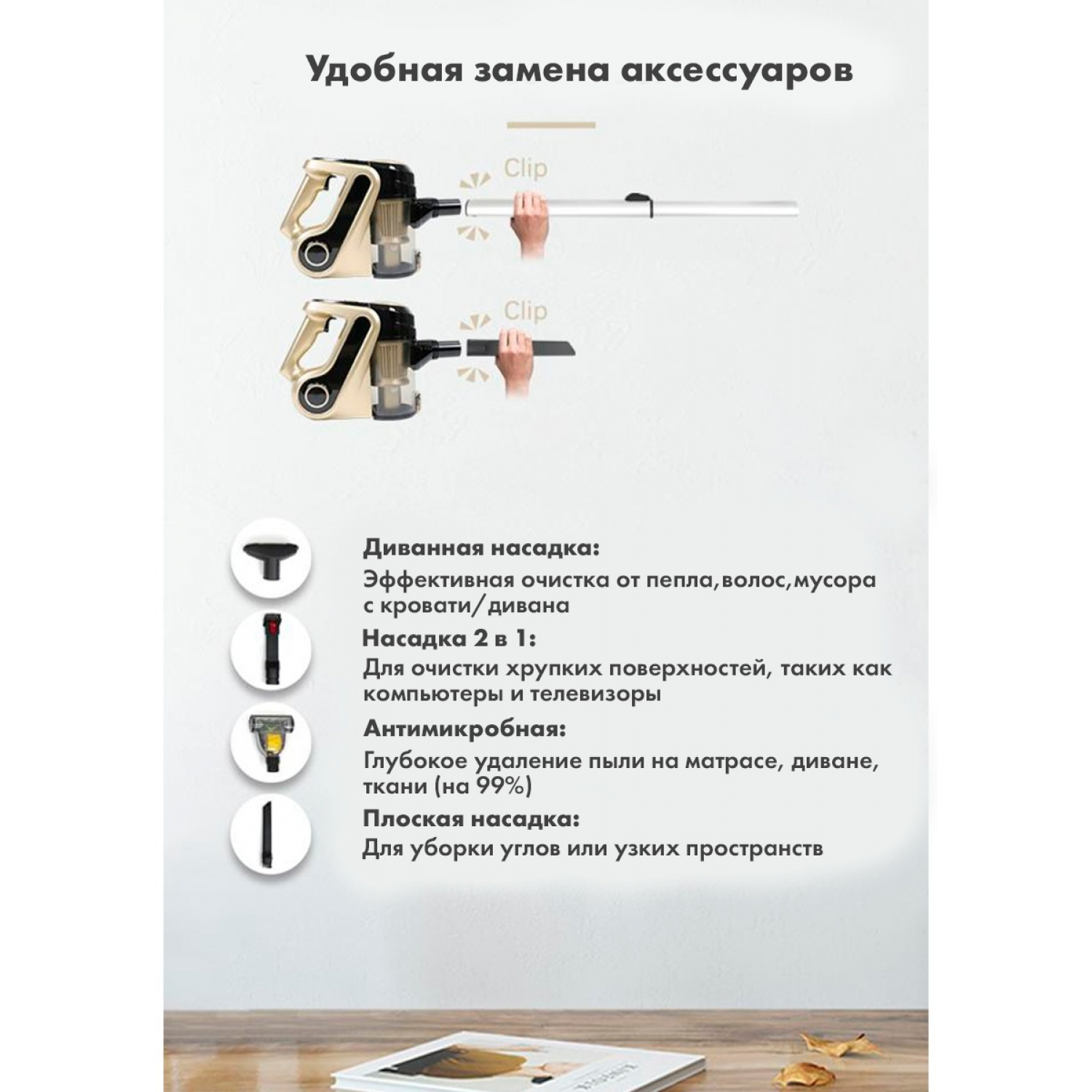 Насадки: 1) Классическая - для эффективной уборки от крупного мусора, пыли и прочих аллергенов