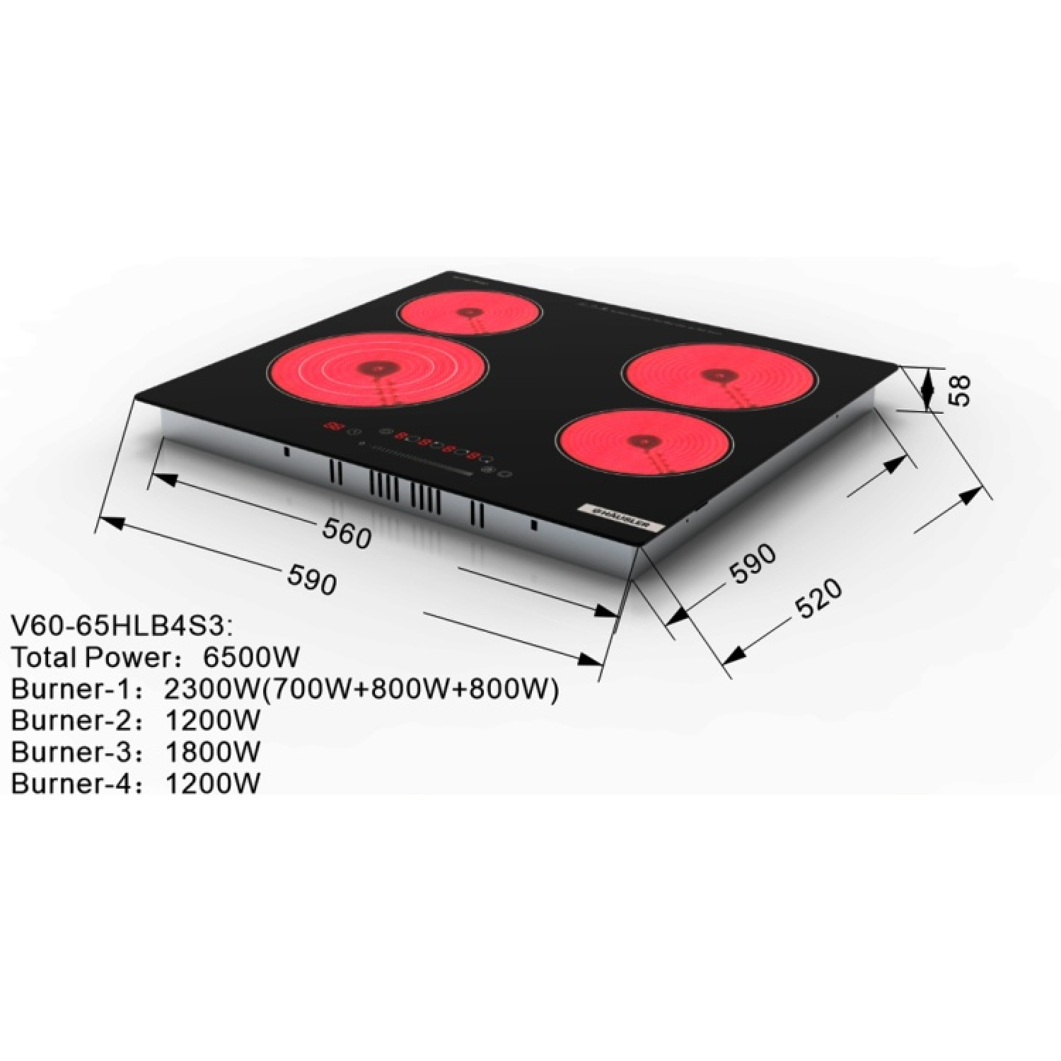 Встроенная керамическая варочная панель 60см,