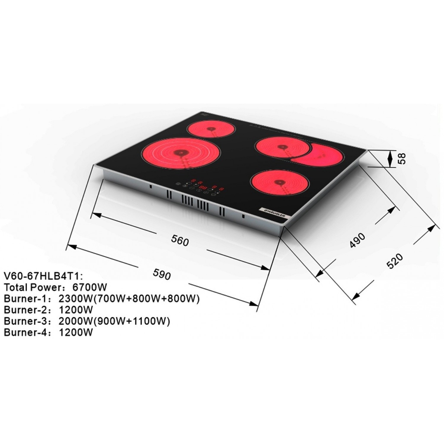 Встроенная керамическая варочная панель 60см,