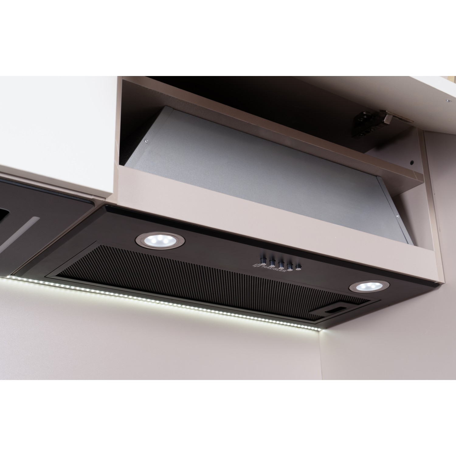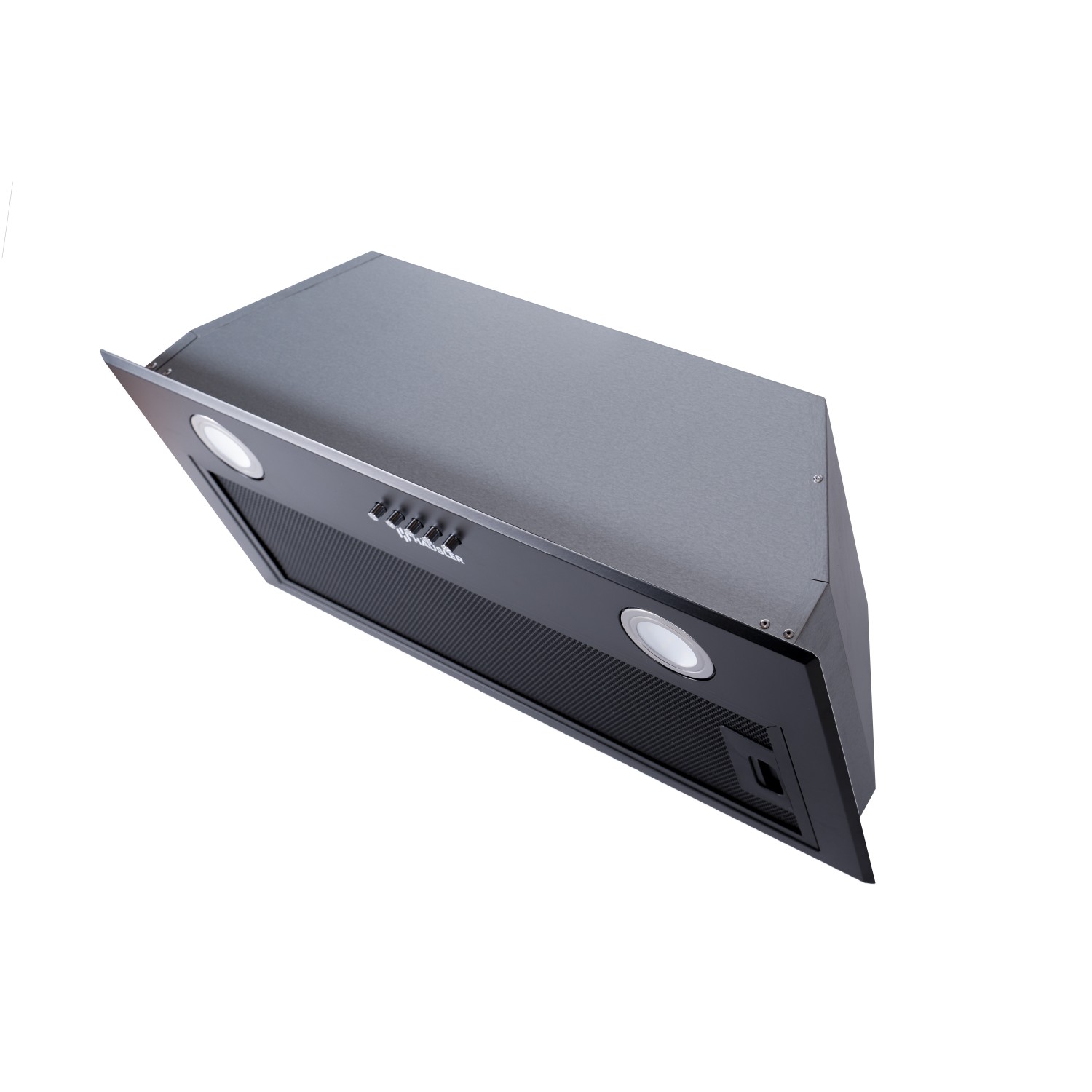 Вытяжка встраиваемая. Поверхность металл. Мощность всасывания 500 м3. Управление электронное.Ширина 60 см. Режим работы: отвод. Угольный фильтр в комплекте. LED освещение.Цвет черный. Производство Китай.